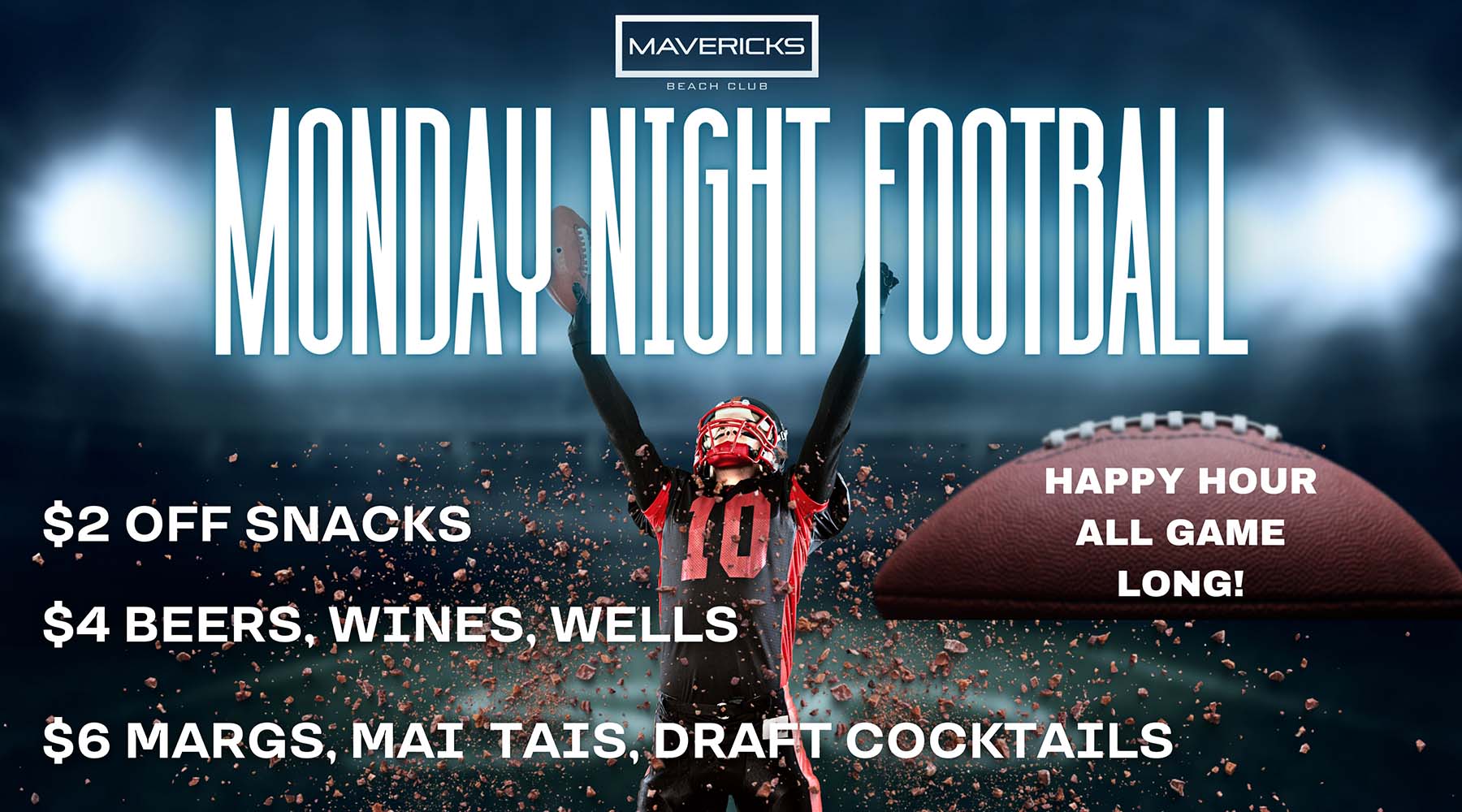 Monday Night Football – $4 Beers, Wine and Wells – $2 Off Snacks